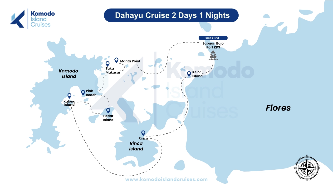 - Pick-up from your Labuan Bajo hotel or the airport between 8:00 AM and 9:00 AM, followed by a transfer to the harbor. The cruise is scheduled to depart between 10:00 AM and 11:00 AM.