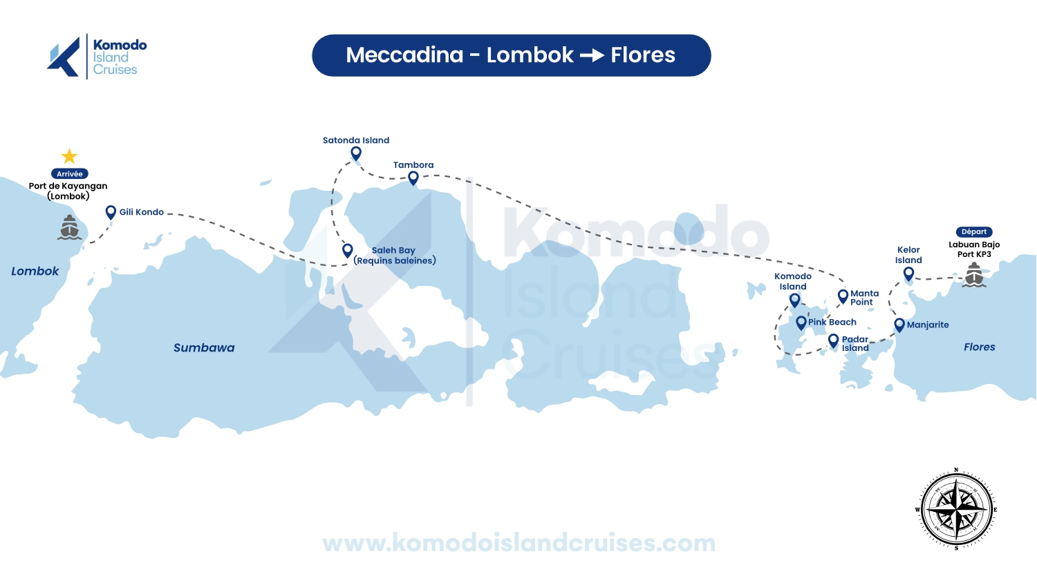 - Return to Civilization We are sailing towards our final destination: the port of Kayangan east of Lombok. This is where your incredible cruise ends. We take care of your transfer to the next stage of your trip.