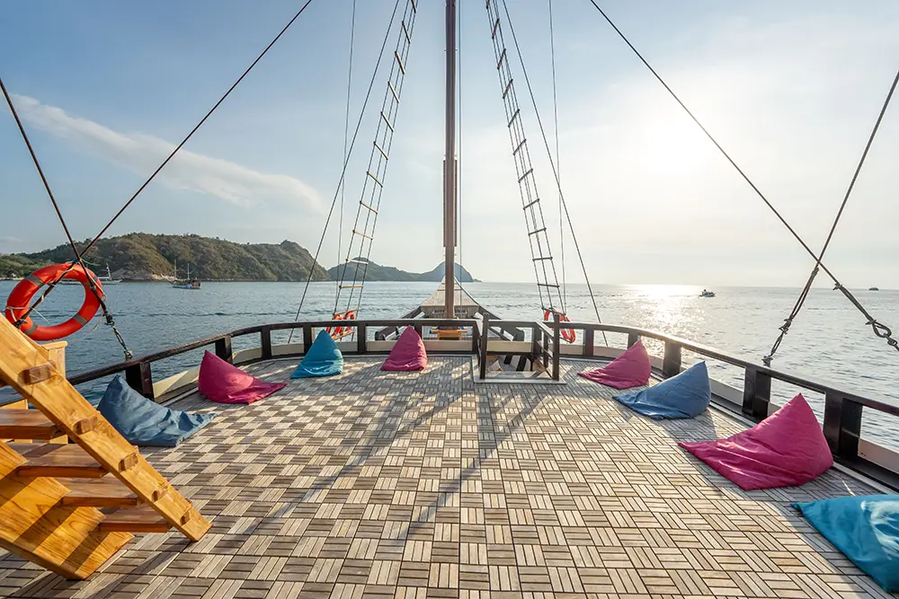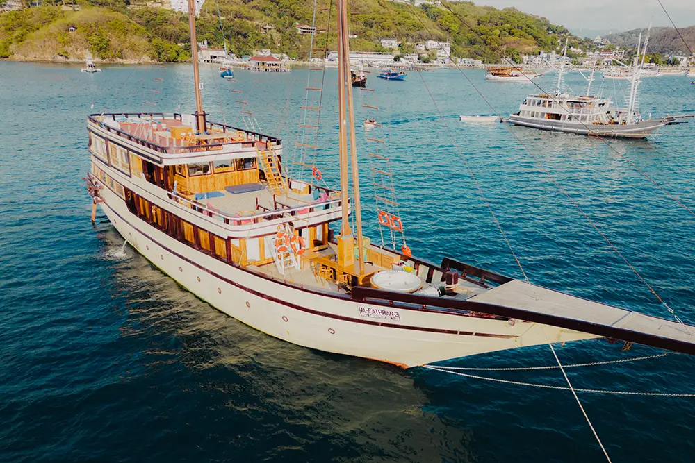 On Al Fathran 3, shared shuttle transfers also apply, but with wider pickup zones in Lombok, including Senggigi, Mataram Center, Kuta Lombok, and Bangsal Harbor. Guests staying on the Gili Islands must arrange their own transport to Bangsal Harbor. In Labuan Bajo, transfers are similarly limited to Labuan Bajo Center and the airport, with later pickup times when departing from Labuan Bajo and more flexible confirmation of final drop-off locations at the end of the cruise.