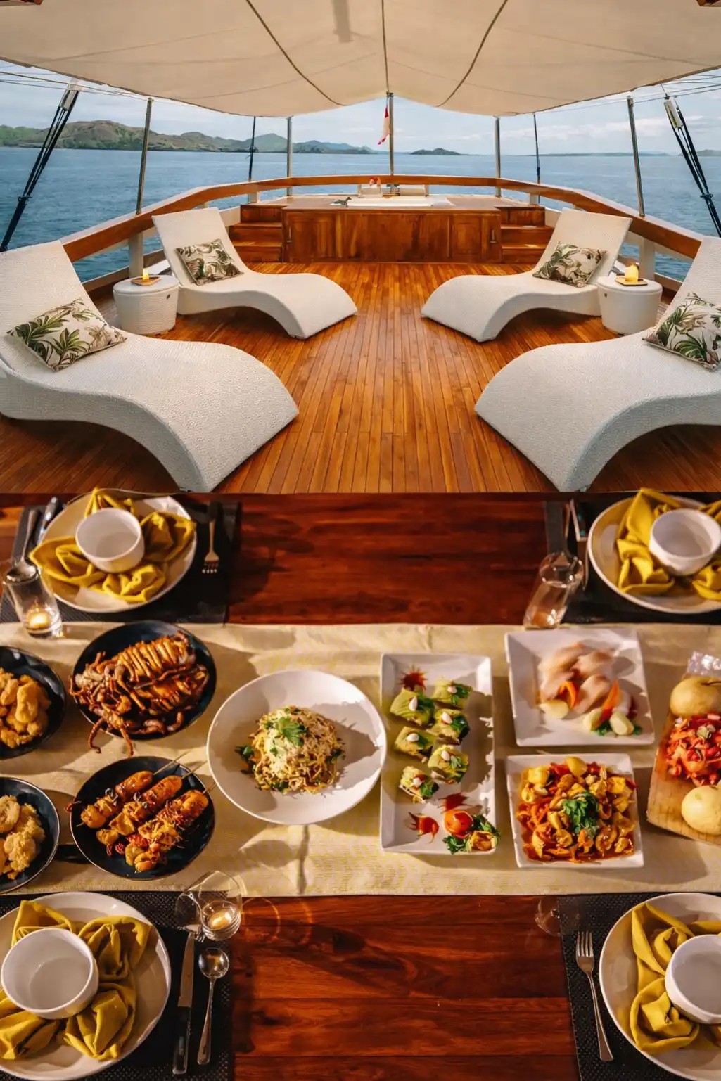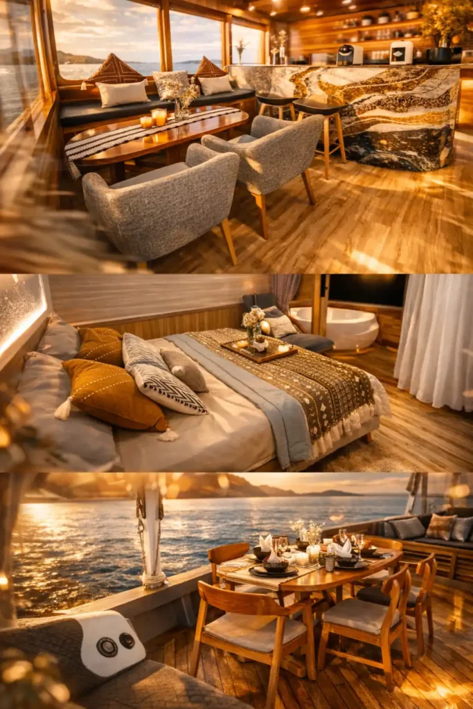 Luxury Phinisi boats redefine elegance at sea. Every detail is designed for comfort, from spacious suites with premium bedding to private bathrooms with hot showers, fine dining experiences, and personalized itineraries.