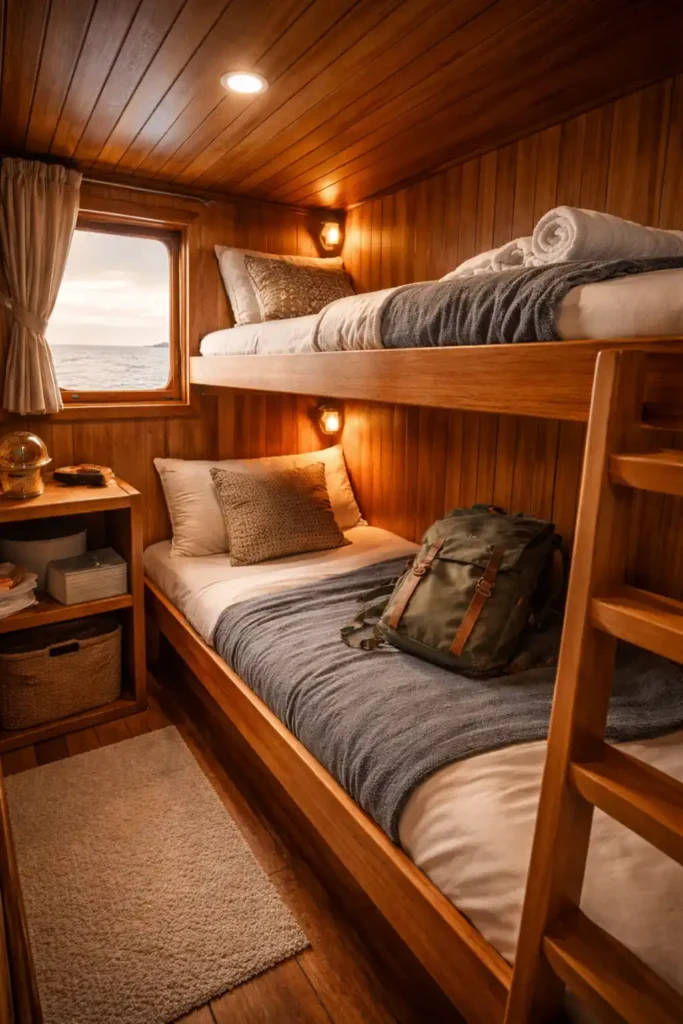 • Shared Cabin: A cozy room with bunk beds or twin beds, shared with other guests — great for meeting fellow travelers.
