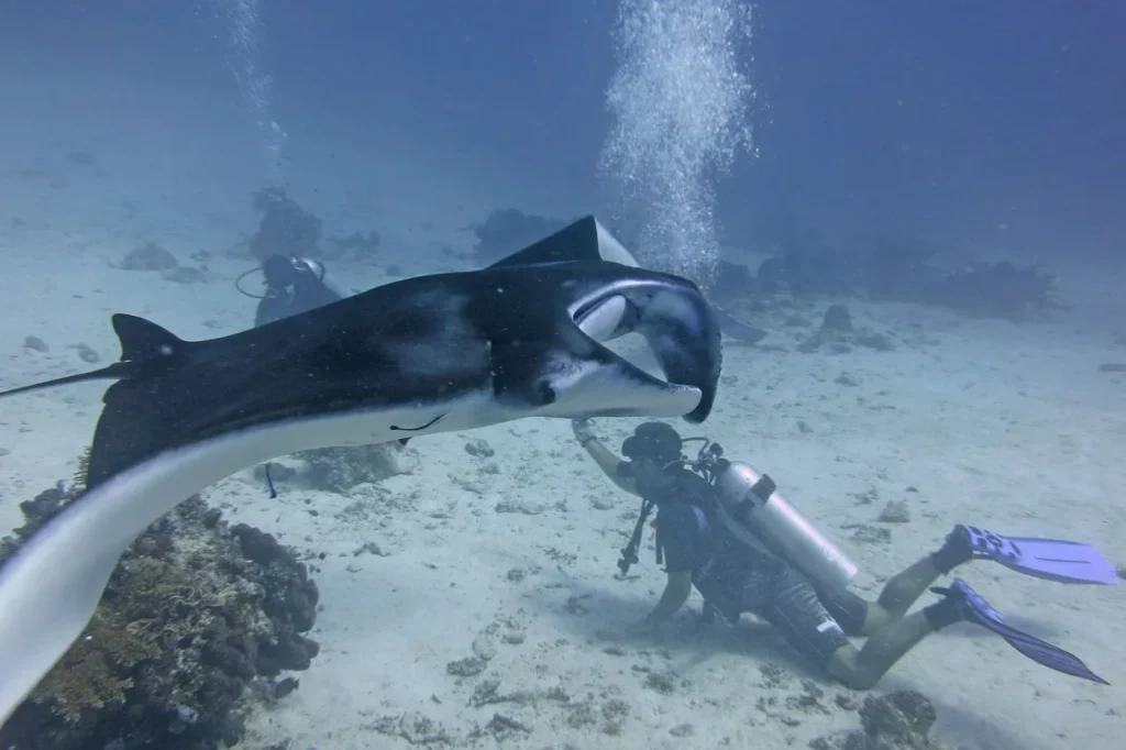 A world-class snorkeling and diving site where you can swim with majestic manta rays in their natural habitat. These gentle giants glide gracefully through the plankton-rich waters, offering an unforgettable and safe close encounter.