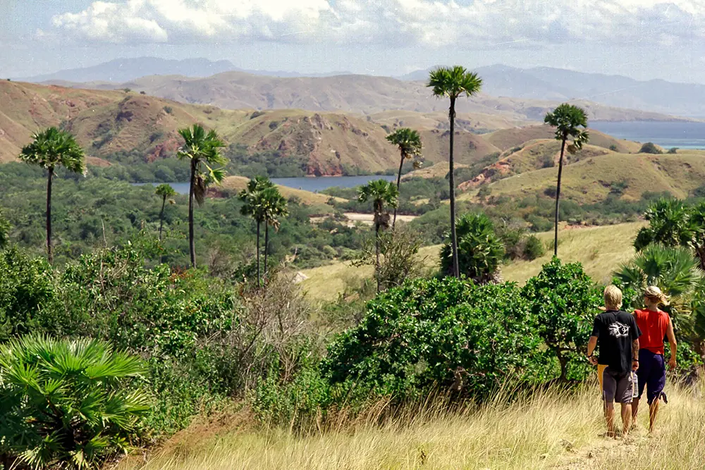 Rinca is often the better choice for families because the walk is shorter and more shaded.