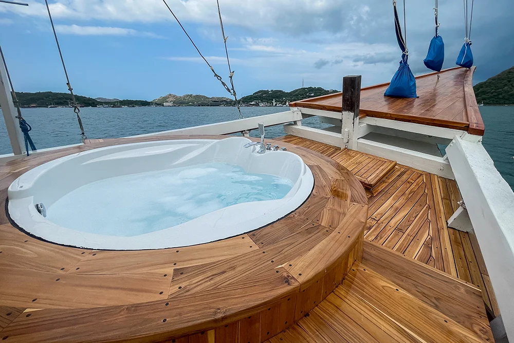 The crew is trained to follow standard marine safety procedures and is familiar with the Komodo sailing area.