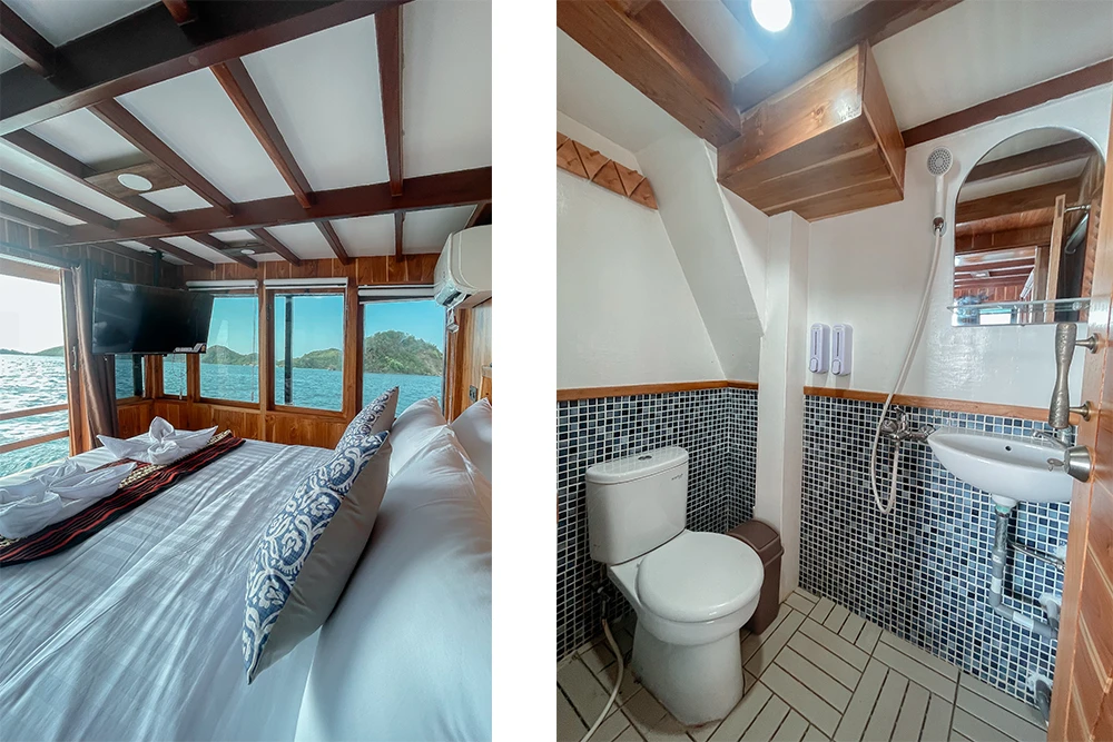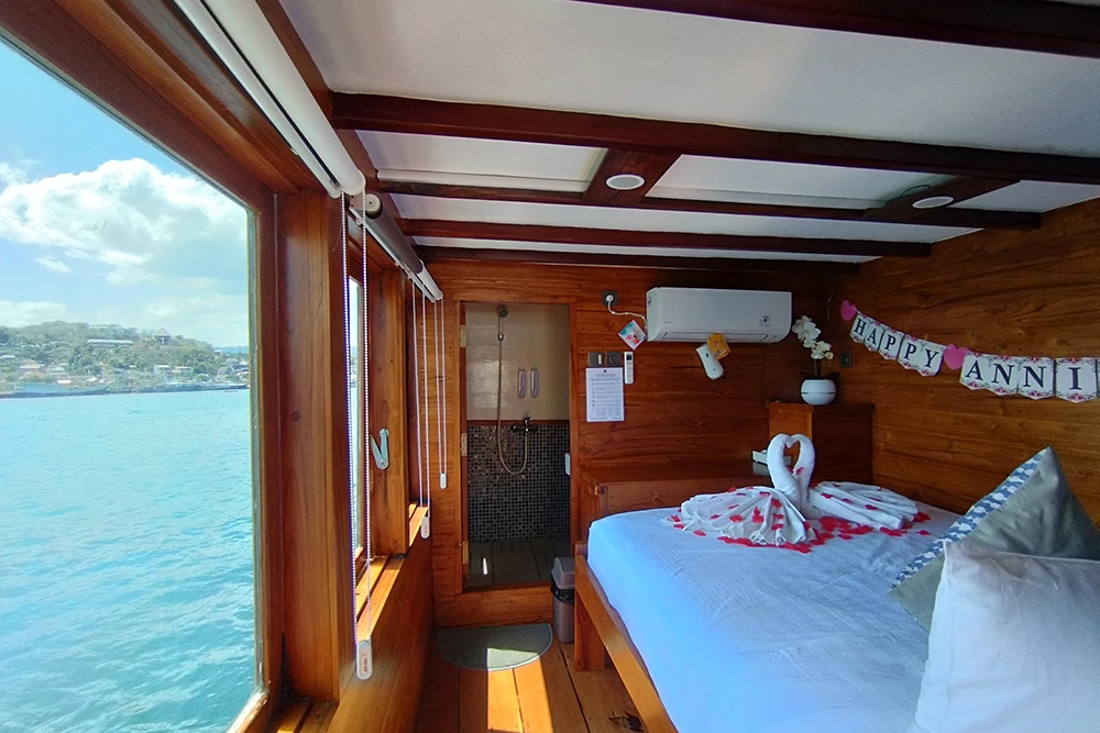 The boat combines traditional Indonesian ship design with modern comfort features. Instead of moving between hotels and boats, guests stay on board for the whole trip, which makes the itinerary more efficient and less tiring.