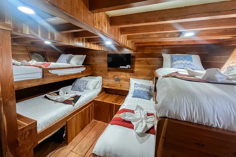 Soe Besar Vanrei offers several cabin categories to suit different travel styles, from private luxury rooms to shared options for budget-conscious travelers.