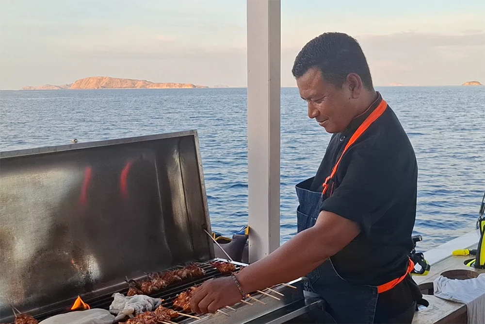 Our chef was a miracle worker. His galley was no bigger than a closet, yet he produced three magnificent feasts a day, plus snacks. How he did it on a rocking boat remains a delightful mystery. We’d wake to fresh-baked bread and banana pancakes with palm sugar. We’d surface from a long, tiring snorkel to find a hot, sweet pile of pisang goreng (fried bananas) and iced tea waiting for us. Lunches and dinners were sprawling Indonesian buffets: rich beef rendang, fresh-grilled fish with fragrant sambal, gado-gado with spicy peanut sauce, chicken satay, and always, a mountain of perfect, fluffy rice. He made us feel not just fed, but nourished, body and soul.